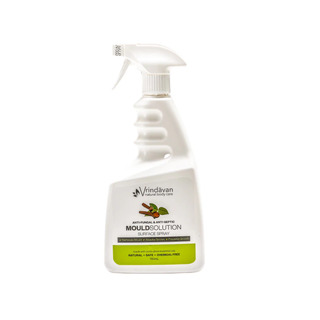 For best result use a micro fibre cloth. Lightly mist on Vrindavan Mould Solution and leave for 20 mins then wipe off. Spray again and leave for 24-48 hours to allow mould spores to dry and drop off.